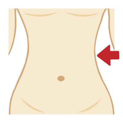 人体のウエストの部分のイラストです。(矢印あり)