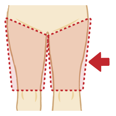 人体の太ももの部分のイラストです。(矢印あり)